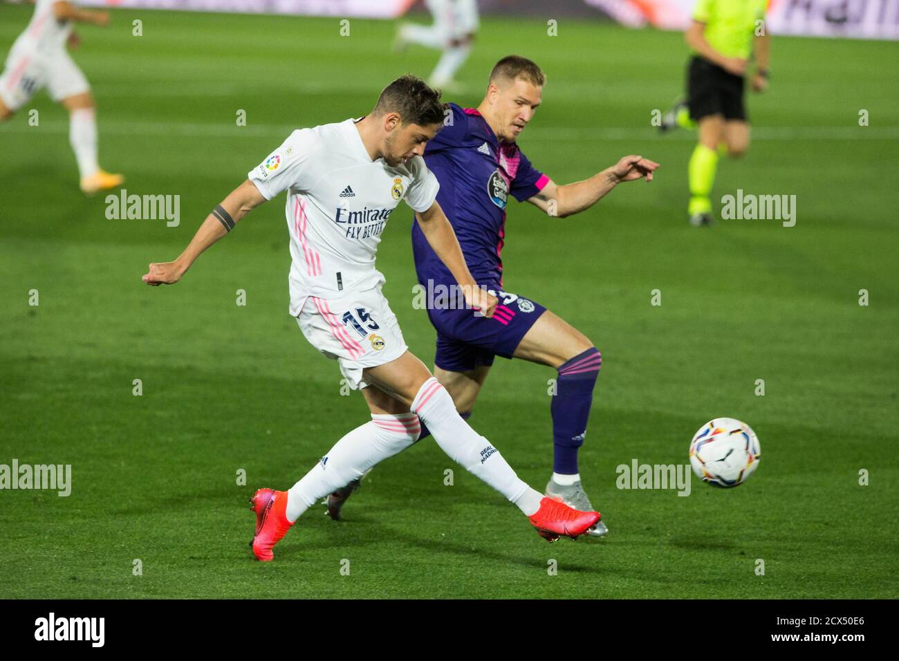 Madrid Spain 30th Sep 2020 Federico Valverde Of Real Madrid And Raul Carnero Of Real Valladolid During Laliga Football Match Played Between Real Madrid Club De Futbol And Real Valladolid At Alfredo